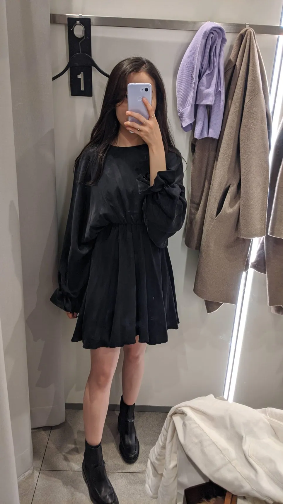p.s. I went shopping that day. I even took a mirror selfie in a dress. (feat. my dazzling lavender Google Pixel 3a)