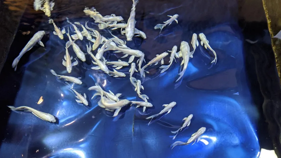 Its body glowed with a beautiful fluorescent light, and when I looked closer, they said it was a piranha. So, it swims so calmly before turning terrifying.