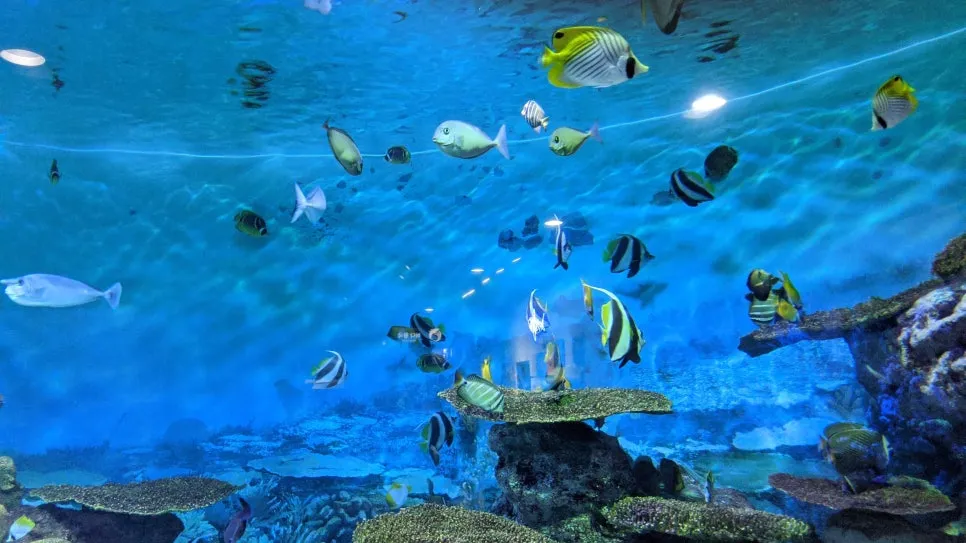 The best part of the aquarium was this place with an enormous glass panel that made you feel like you were underwater. The background music, which had a Howl’s Moving Castle vibe, certainly played a big part, haha. It’s a great spot to sit alone, zone out, organize your thoughts, or clear your mind. If I get the chance next time, I should come alone!