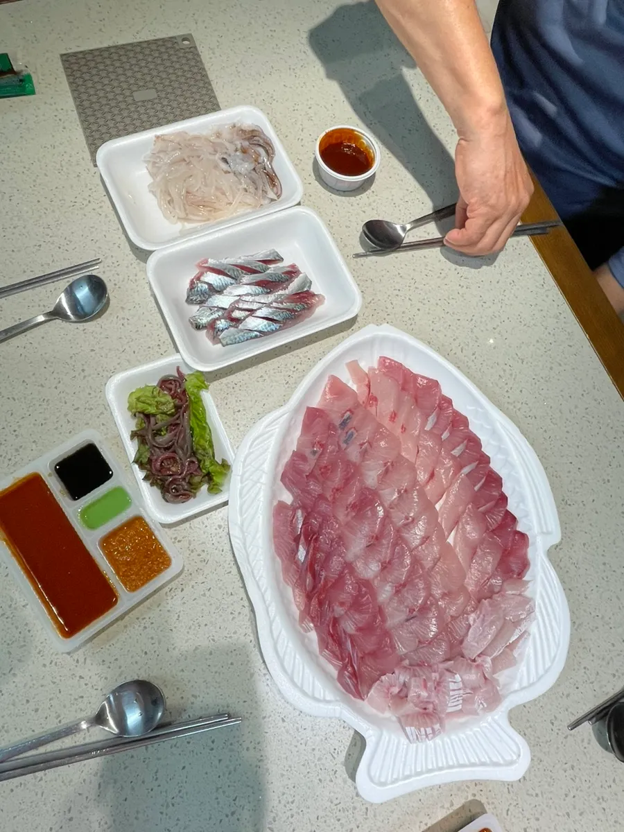 Yellowtail sashimi, squid sashimi, and mackerel sashimi!!! ๐