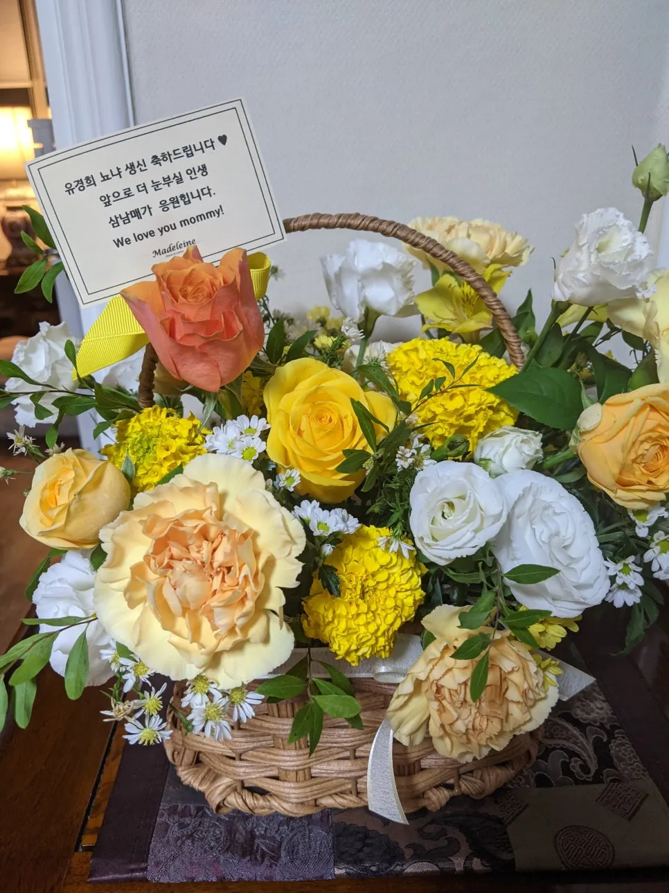 Mom had to rush to Yeongdeok in the morning and couldn’t see the flower basket..ㅜㅜ