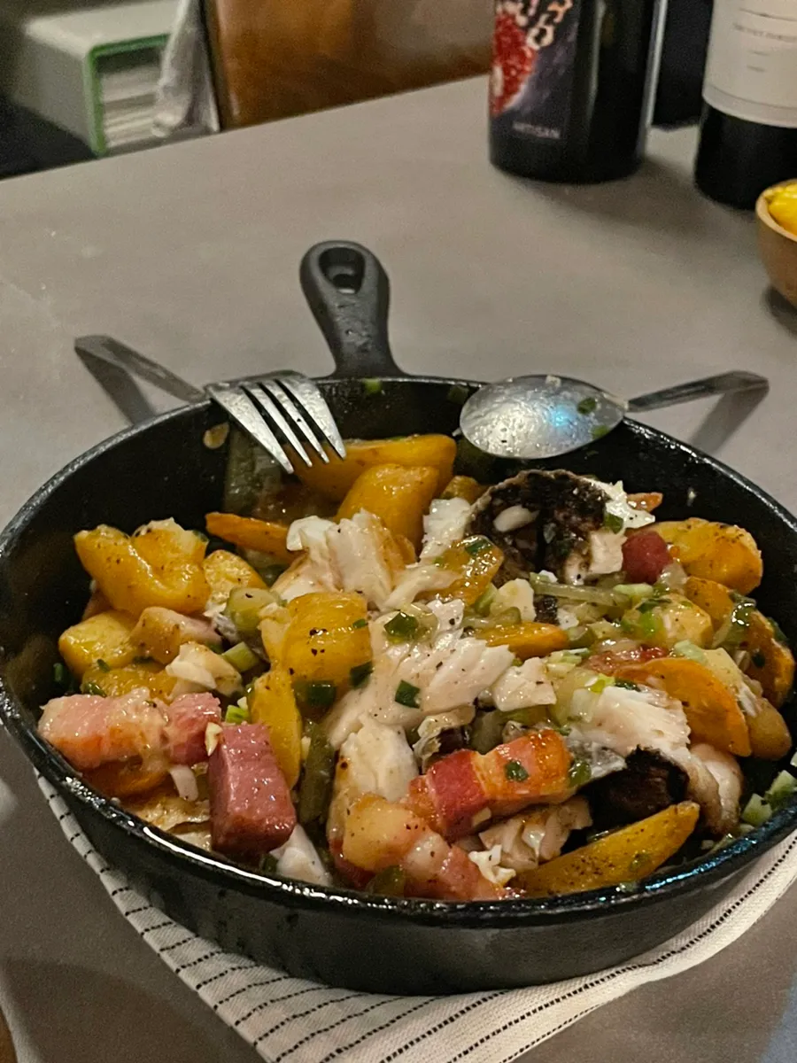 Fish dish,, with potatoes and homemade bacon too!!