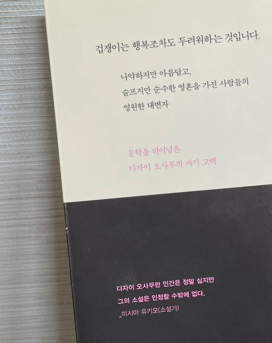 When someone asks me for a book recommendation, Dazai Osamuâs No Longer Human is the first thing that comes to mind. No Longer Human is also known as a novel thatâs like Dazai Osamuâs autobiography, so the famous Egon Schieleâs âSelf-Portraitâ would suit the cover well. The cover of the book I bought isnât that particular artwork, but this illustration feels unsettling, like the subtle expression of the protagonistâs childhood described in the early parts of the novel. Yet, this unsettling and uncomfortable feeling I get throughout reading the novel is strangely comforting. The reason I recommend this novel to many people around me is similar: most of them reacted with, âI was surprised how similar the protagonistâs thoughts were to mine.â