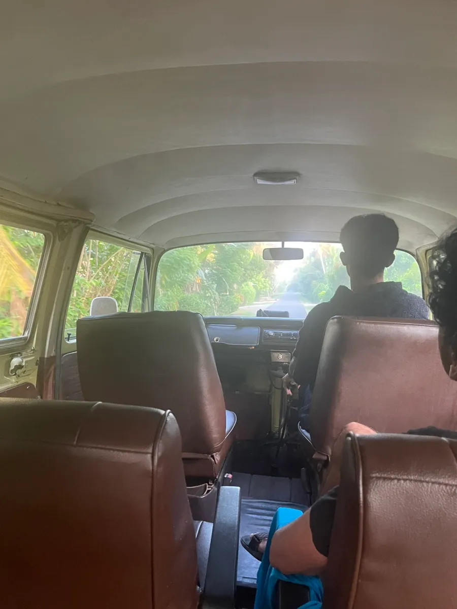 The van, playing pop songs, drove along winding roads. So romantic,,