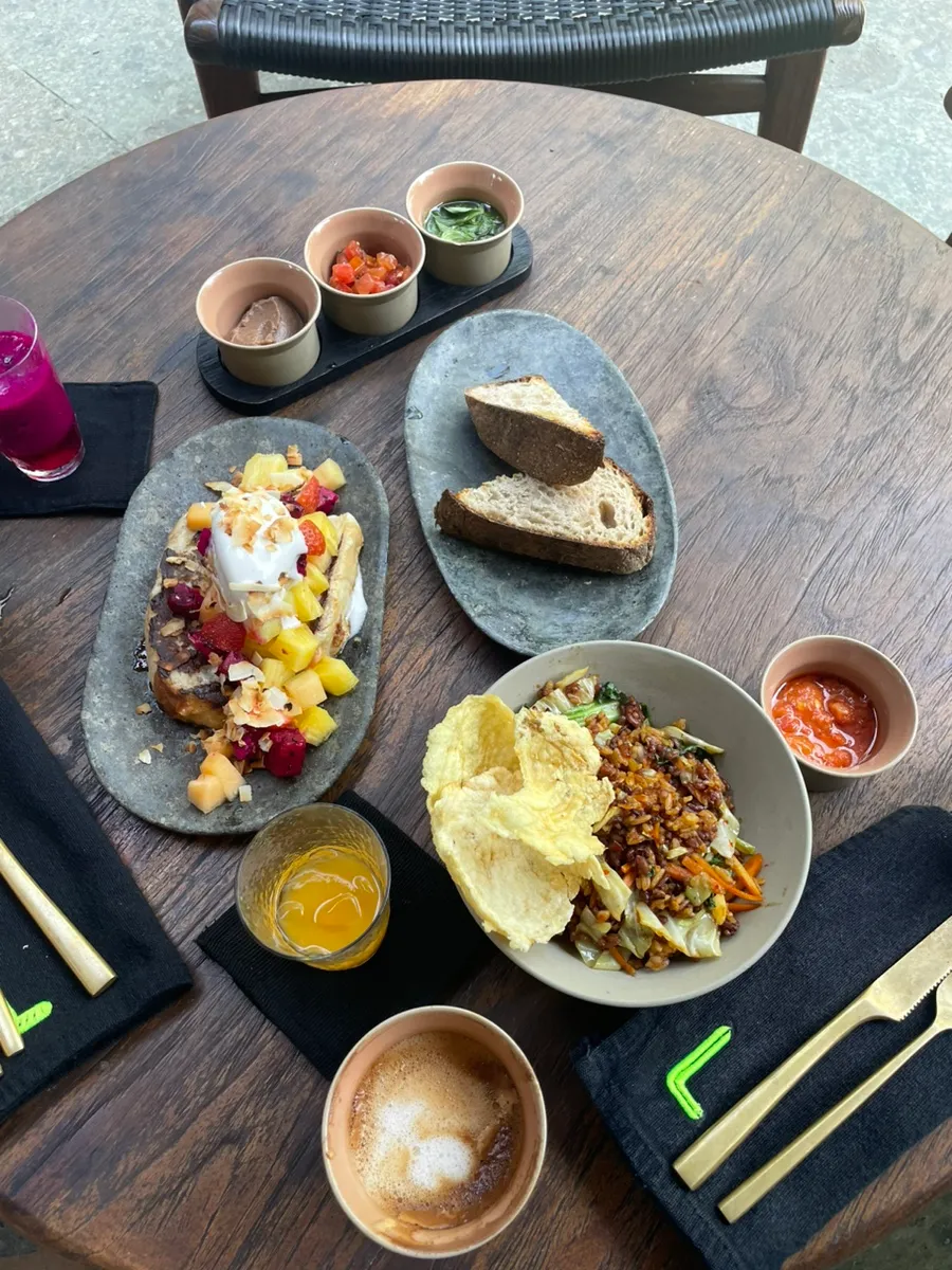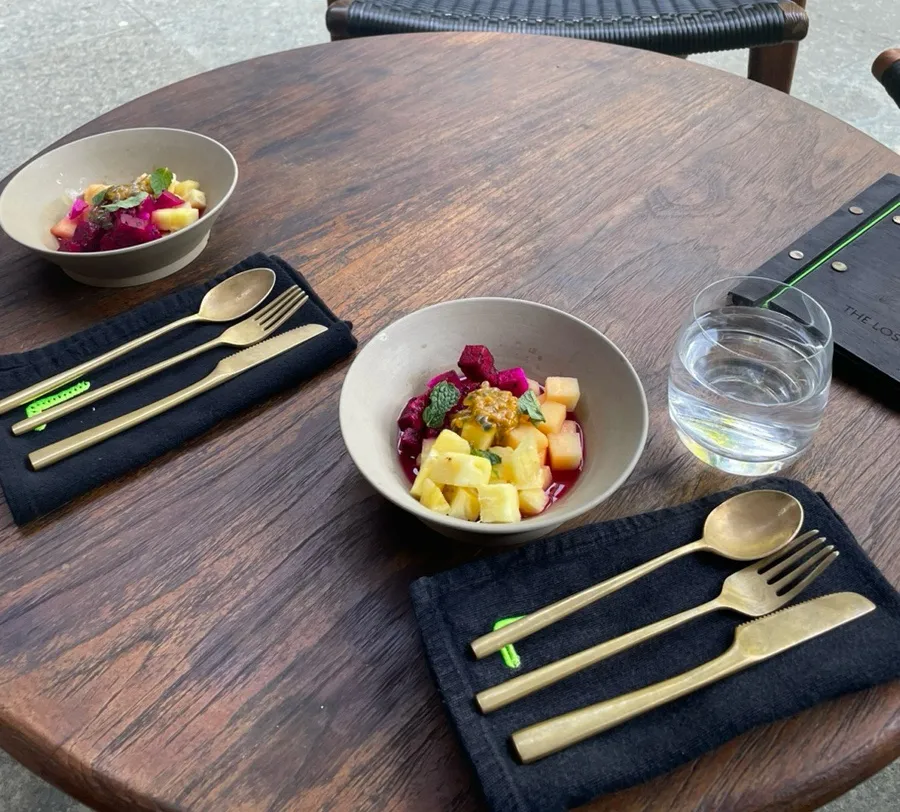 The tropical fruit bowl they always serve before your ordered meal arrives.