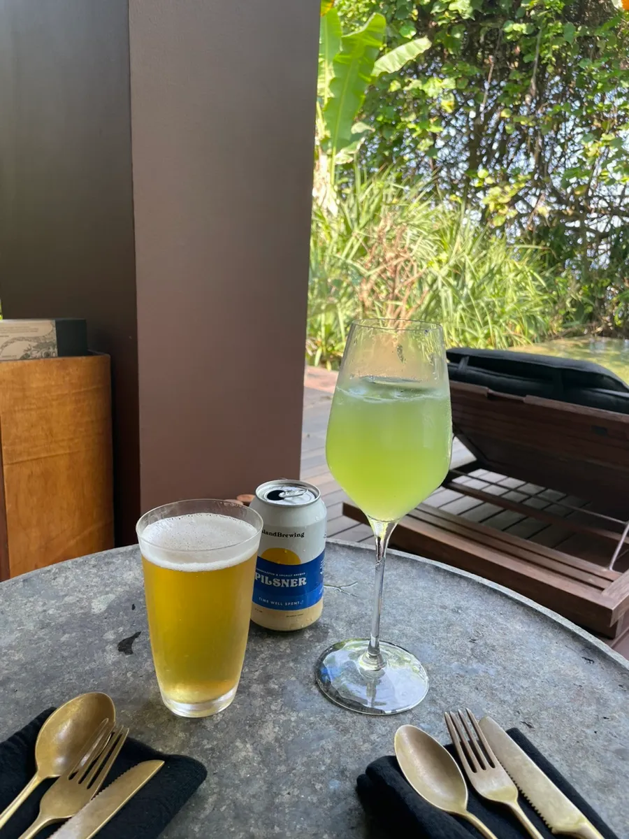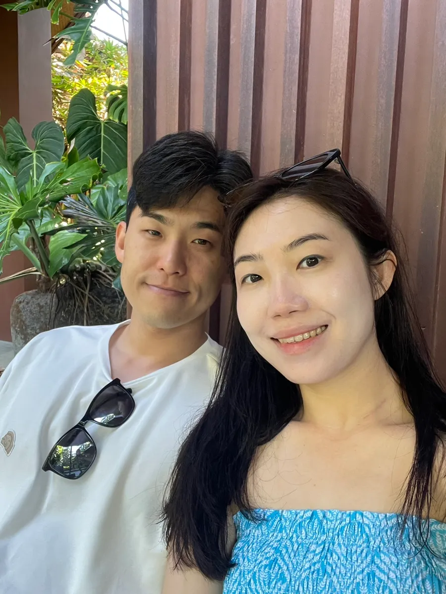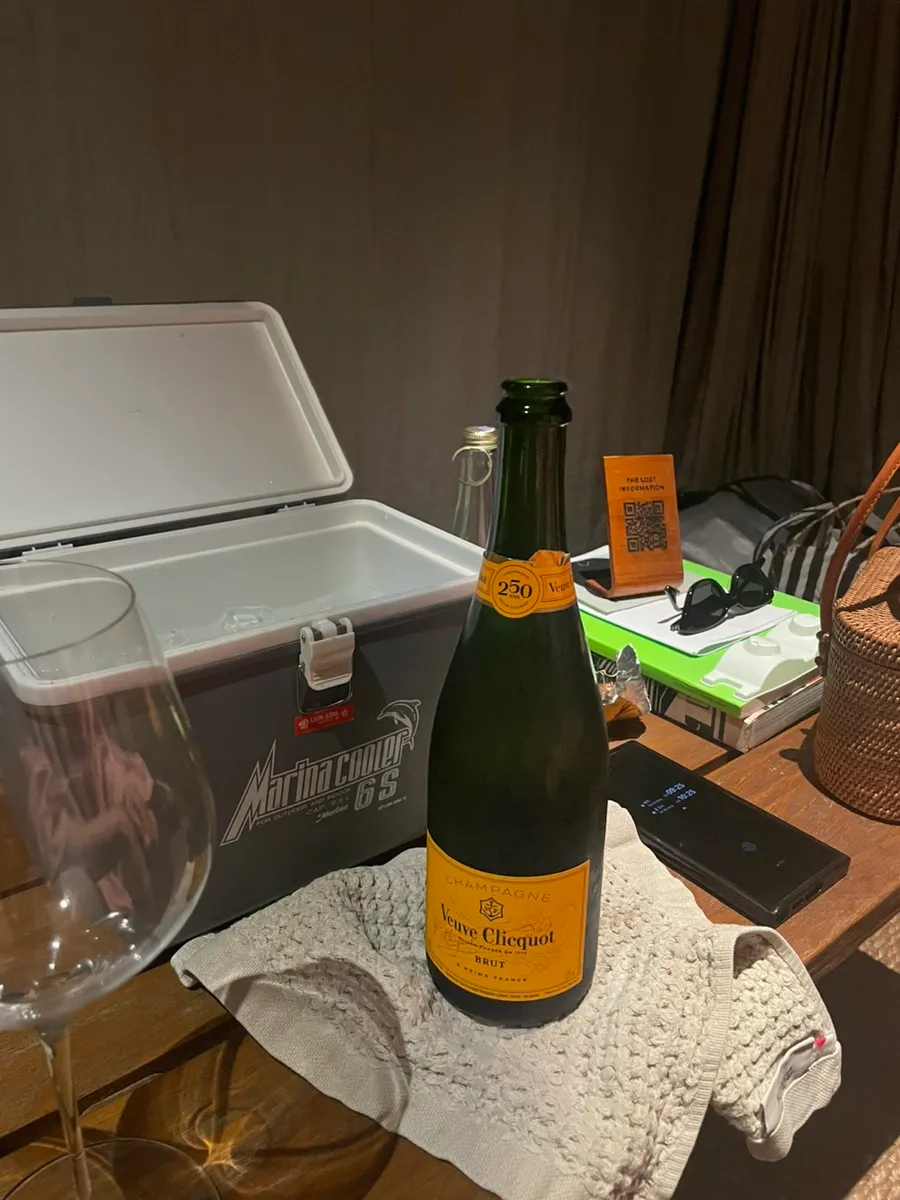 After finishing dinner, we opened the champagne we bought at the duty-free shop. Happy Honeymoon🥂🍾