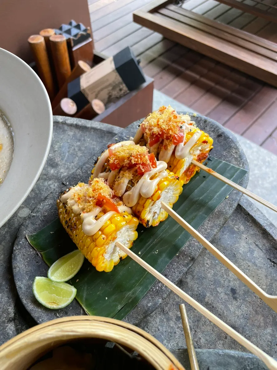After an intense water play session from morning, we came out after showering… We had no energy before breakfast.