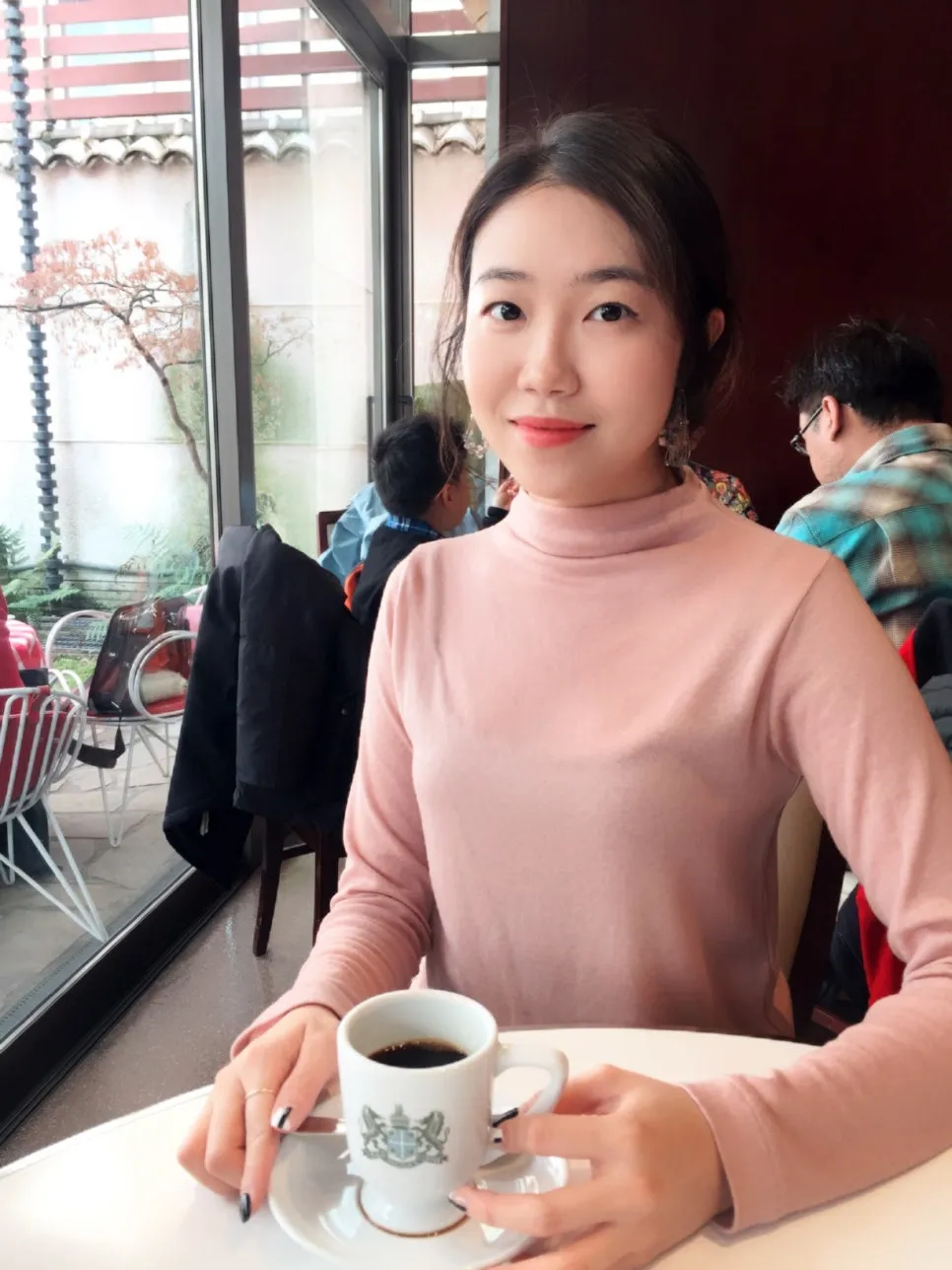 The middle-aged man who was drinking coffee looked cool.