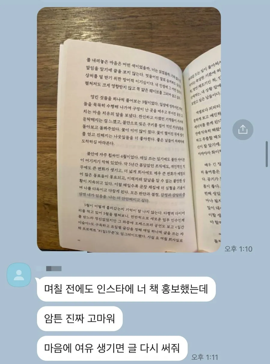 At the time, I saved the words of those who sent congratulations and love for my small pieces of writing. An acquaintance who had published a book before told me that I could hardly expect to hear opinions about my book from people around me, and that I should be grateful if they even read it.