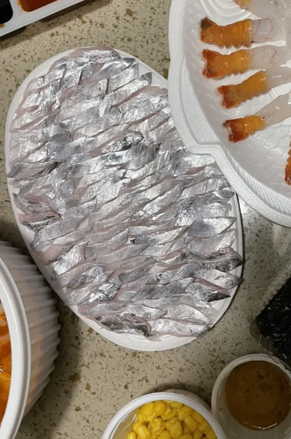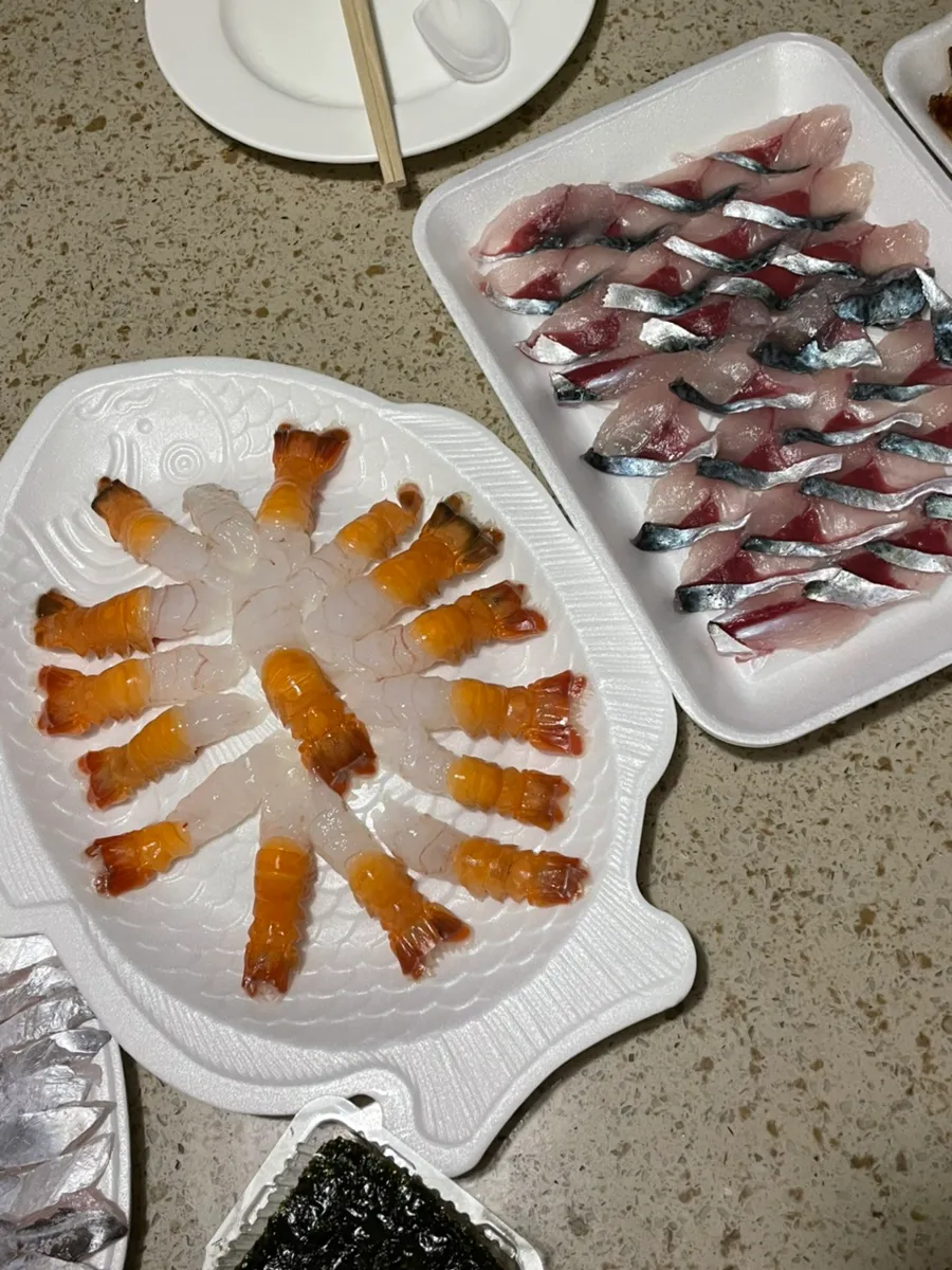 A raw fish party after some relaxation,, hahaha Galchi-hoe (beltfish sashimi), ttaksaeu (mantis shrimp), godeungeo-hoe (mackerel sashimi) all together!
