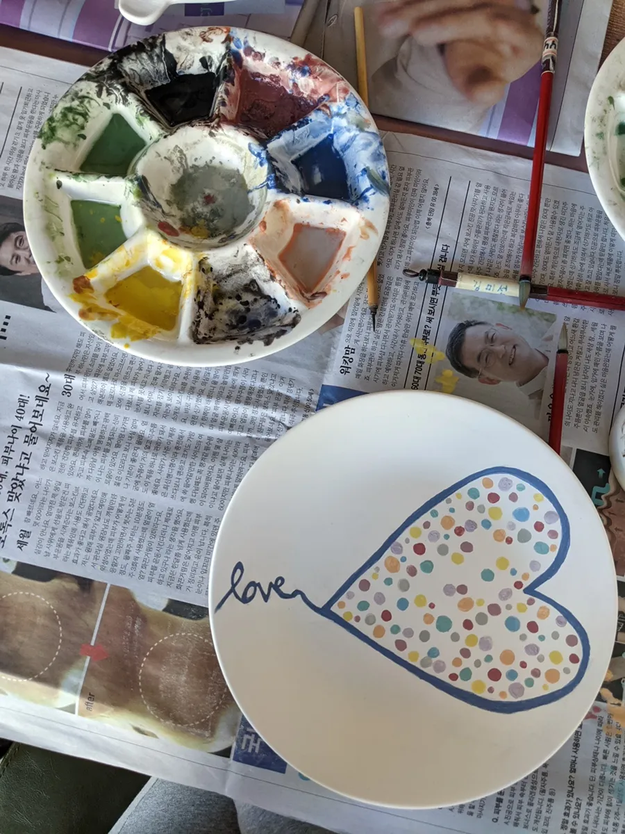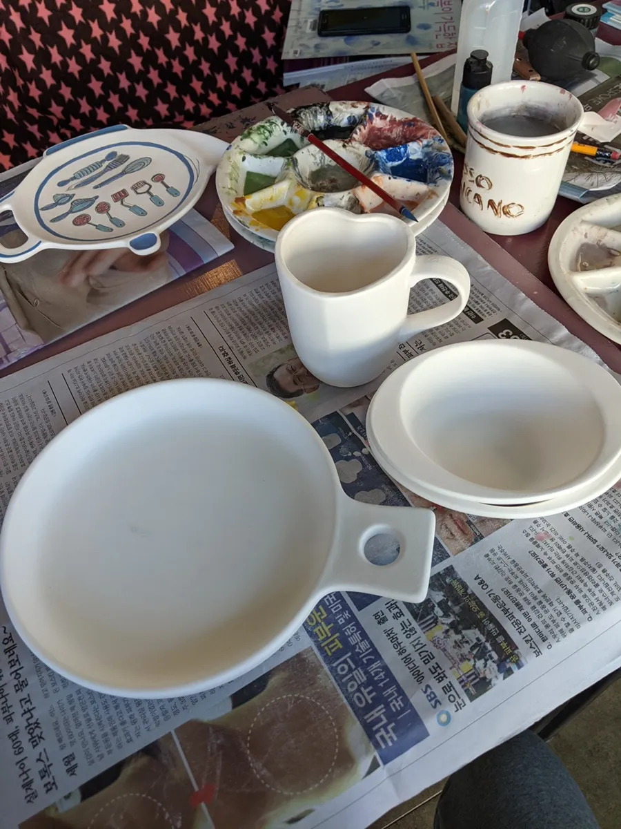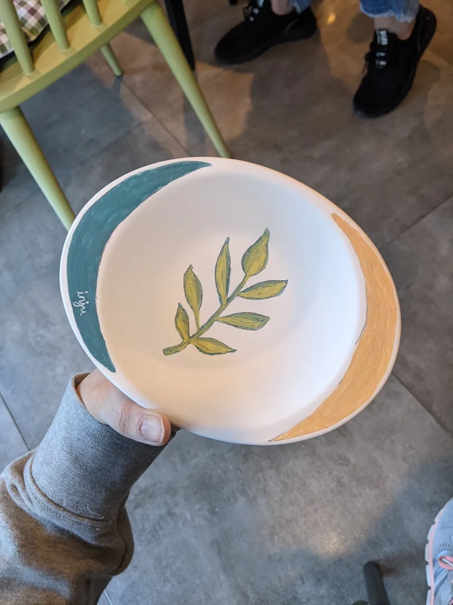 I finally tried pottery painting🎨 at my aunt’s cafe and workshop.