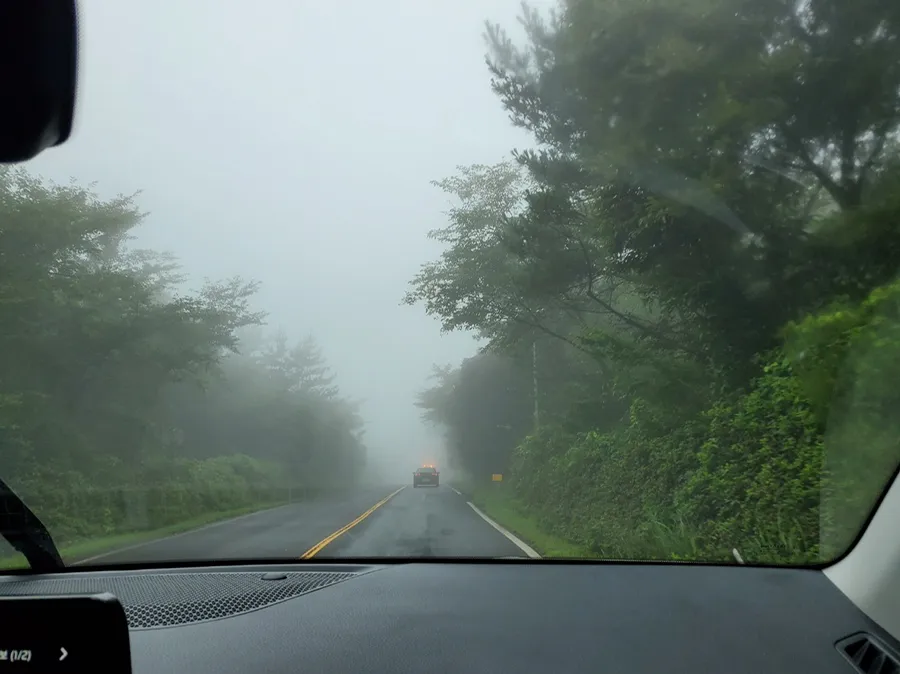 Driving like a turtle through the fog and stormy rain,,,