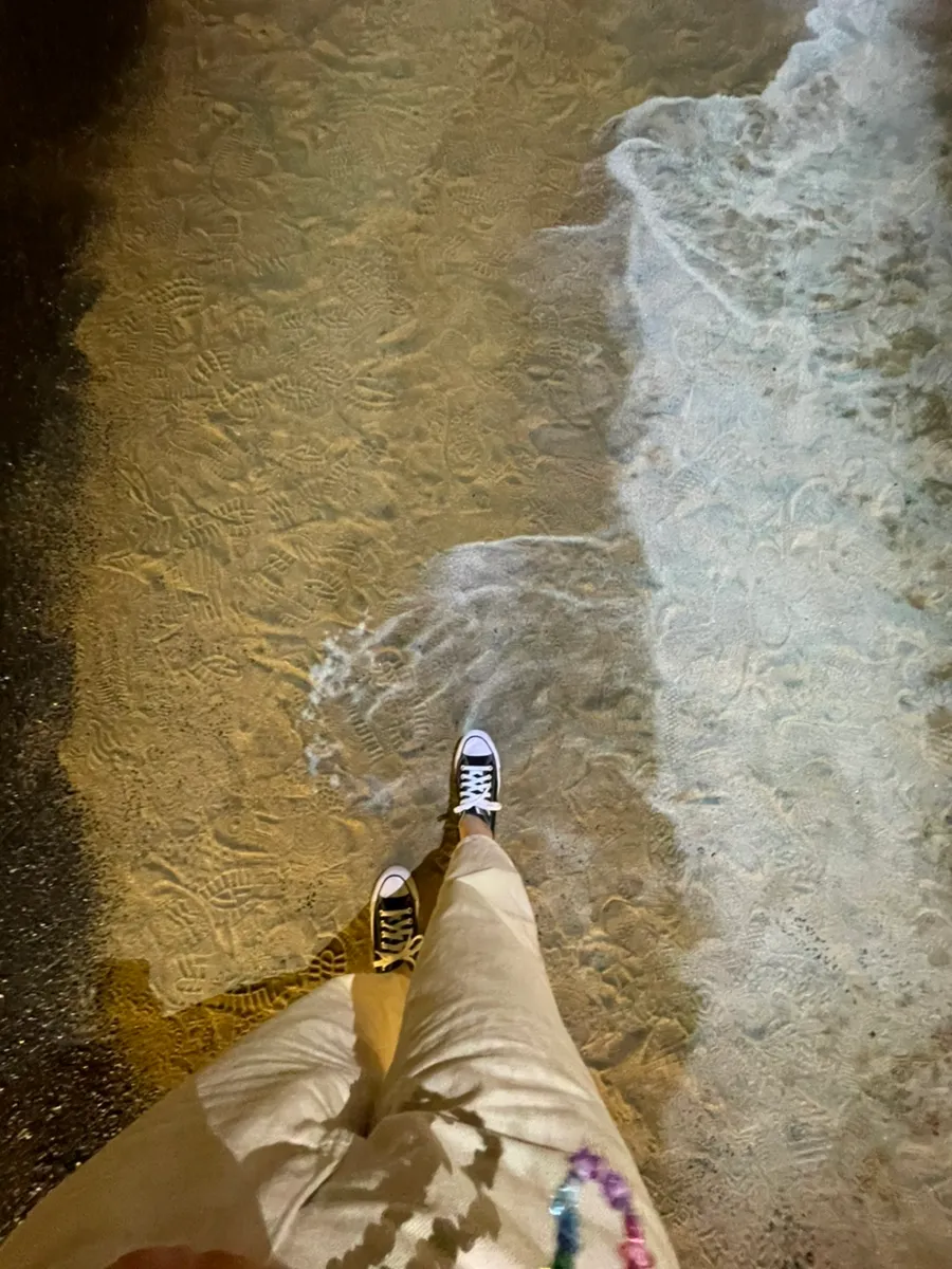 They actually laid down real sand and used a beam projector to project waves,,, such a novel interior..!