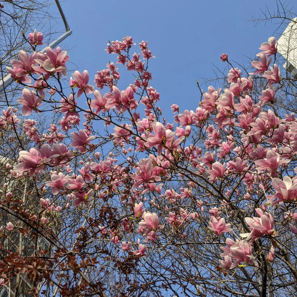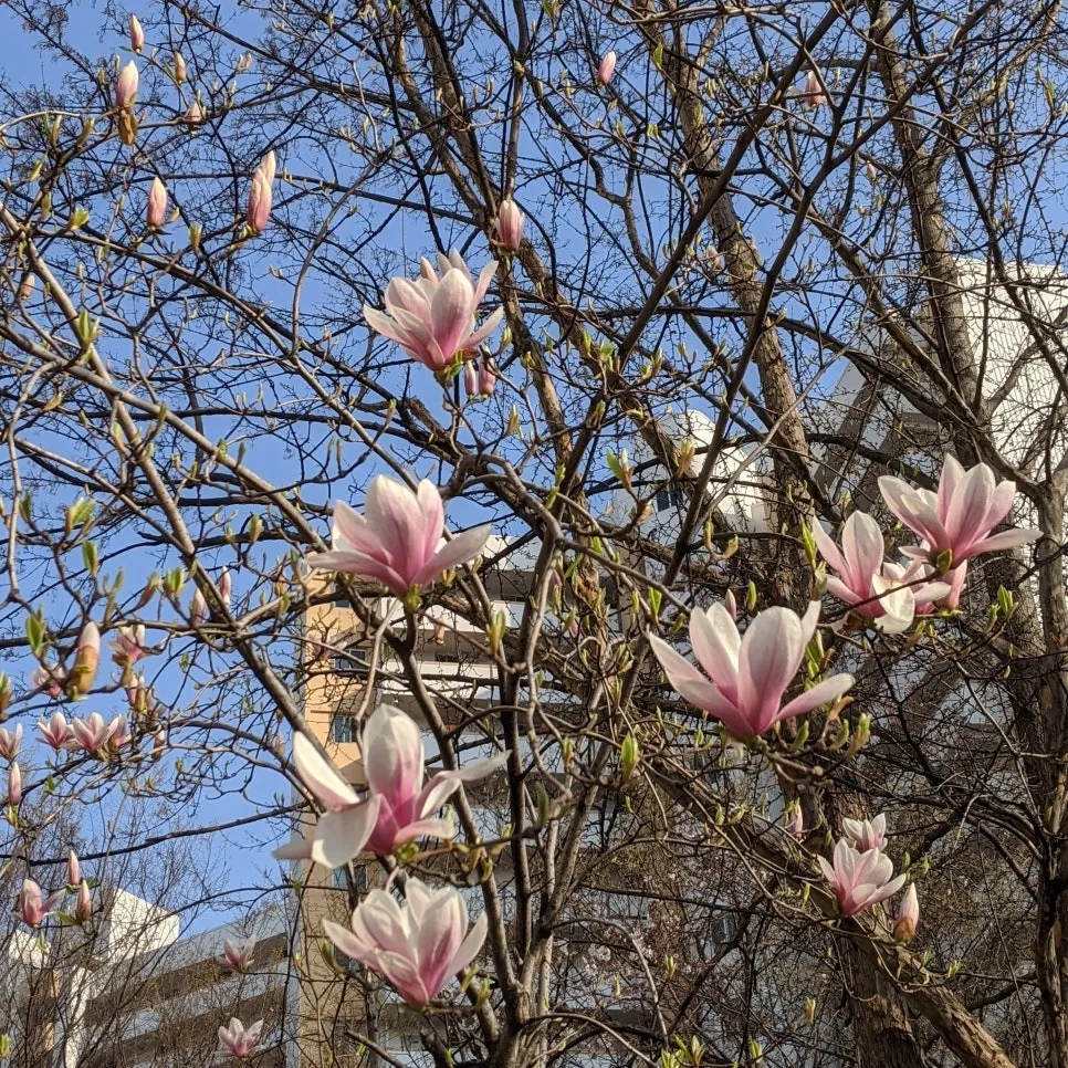 Due to COVID-19 and the social distancing campaign, many people are staying cooped up at home. Thanks to this, the online shopping market is growing day by day, and while I don’t know what huge target it will become for me/us next year, I’m grateful that terrifying things like maintaining office commutes or salary cuts aren’t happening. Despite the unsettling times with COVID-19, it’s clear that spring has settled in everywhere these past few days. I took a walk around the neighborhood during lunch to soak up the sun, and flowers had bloomed without me noticing. Personally, I prefer magnolias to cherry blossoms in spring, but the magnolias have already shed their petals, and the cherry blossoms are slowly plumping up. Feeling frustrated that I can’t go out freely, I decided to capture the neighborhood’s flowering trees with my camera, trees I hadn’t paid much attention to before. All these beauties were so close, and I just let you pass by every year… This spring, I’ll appreciate you fully. I’ll go see them again tomorrow!