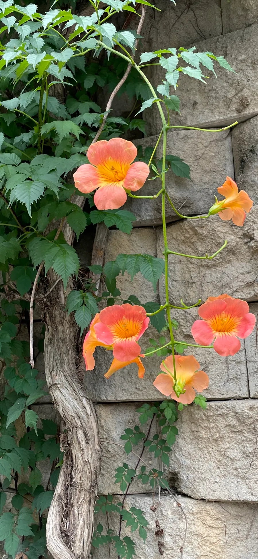 The trumpet creeper by the roadside that became the model for this painting…