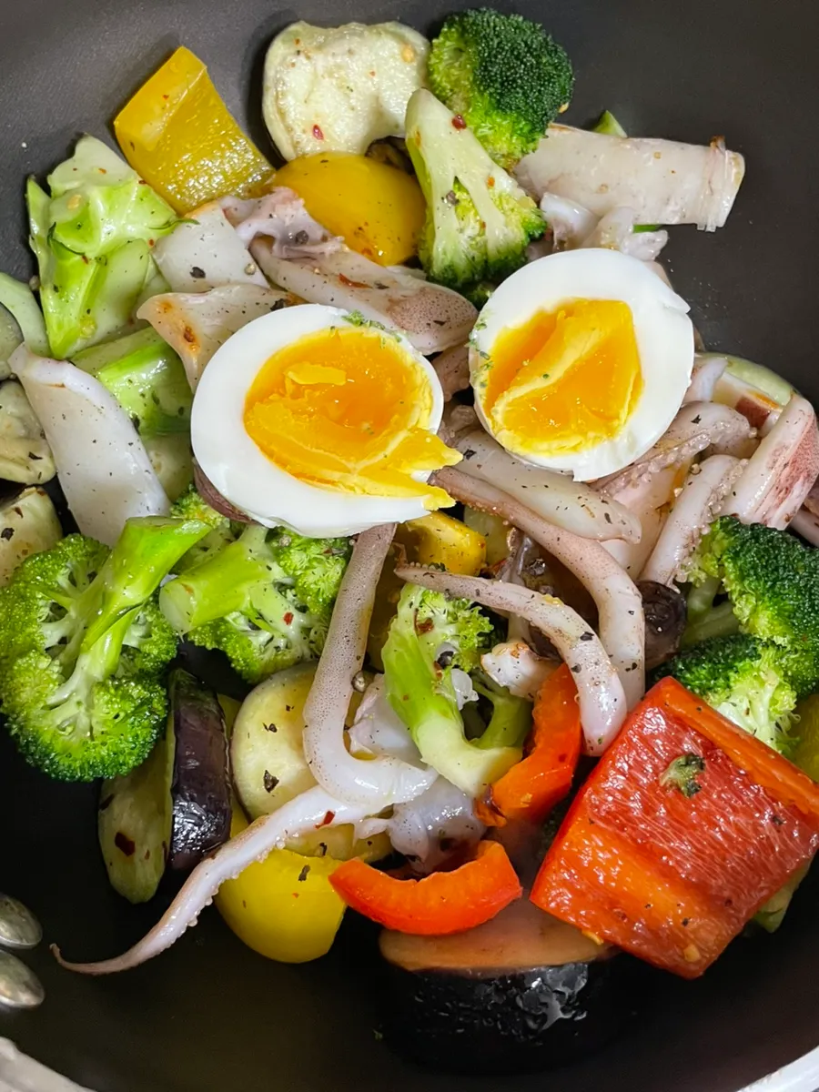 Deliciously grilled semi-dried squid and vegetables